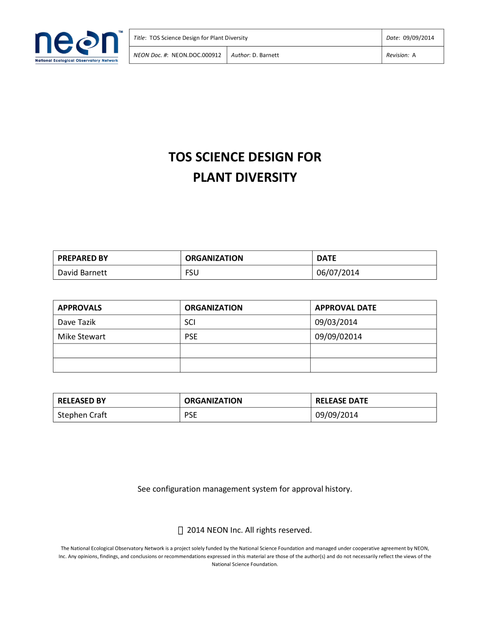 TOS Protocol and Procedure: Plant Diversity Sampling