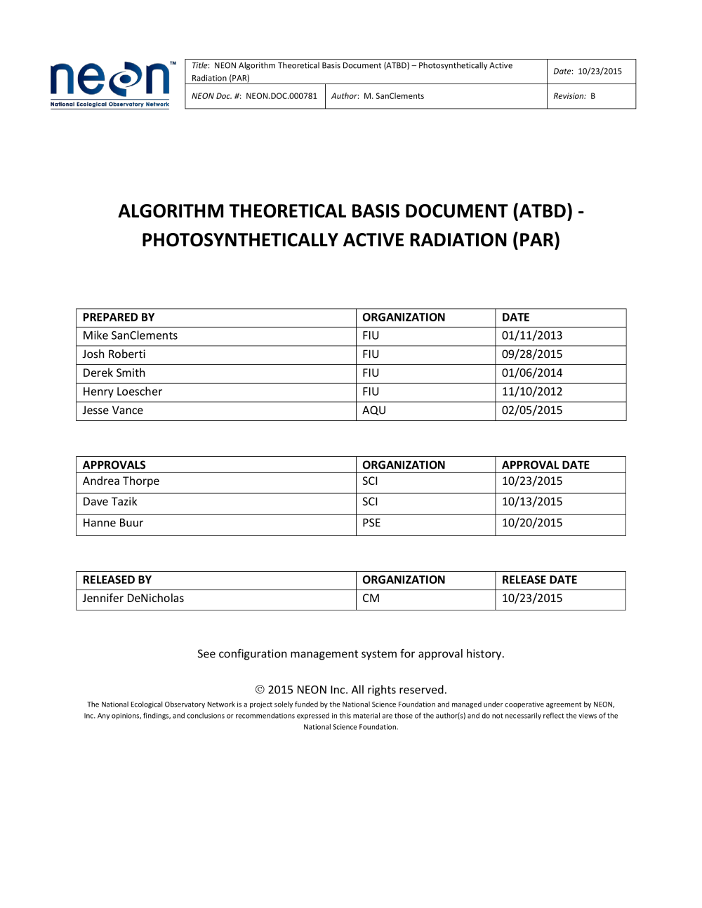 NEON.DOC. 000781 (Version 1.0)