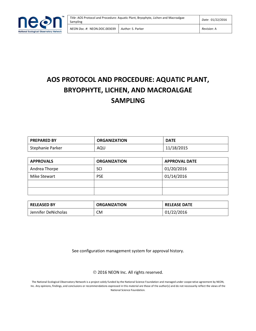 AOS Protocol and Procedure: Aquatic Plant, Bryophyte, Lichen, and Macroalgae Sampling