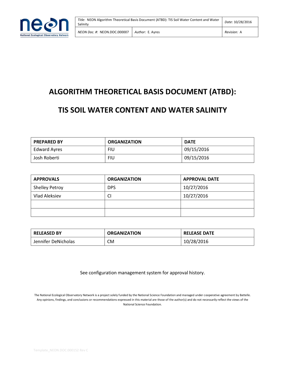 ALGORITHM THEORETICAL BASIS DOCUMENT (ATBD): TIS SOIL WATER CONTENT AND WATER SALINITY