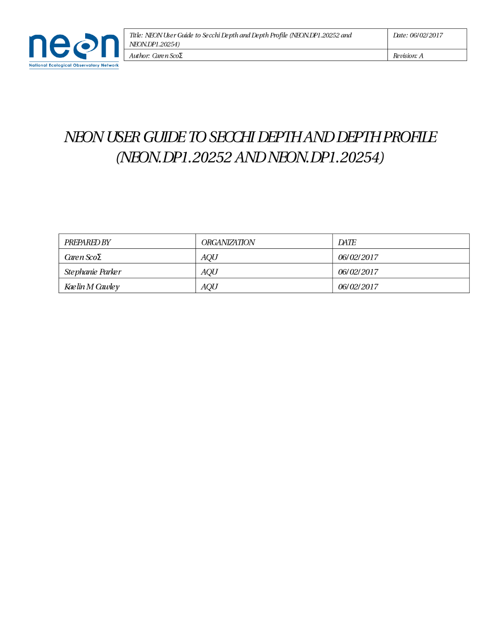 NEON User Guide to Secchi Depth and Depth Profile (NEON.DP1.20252 and NEON.DP1.20254)