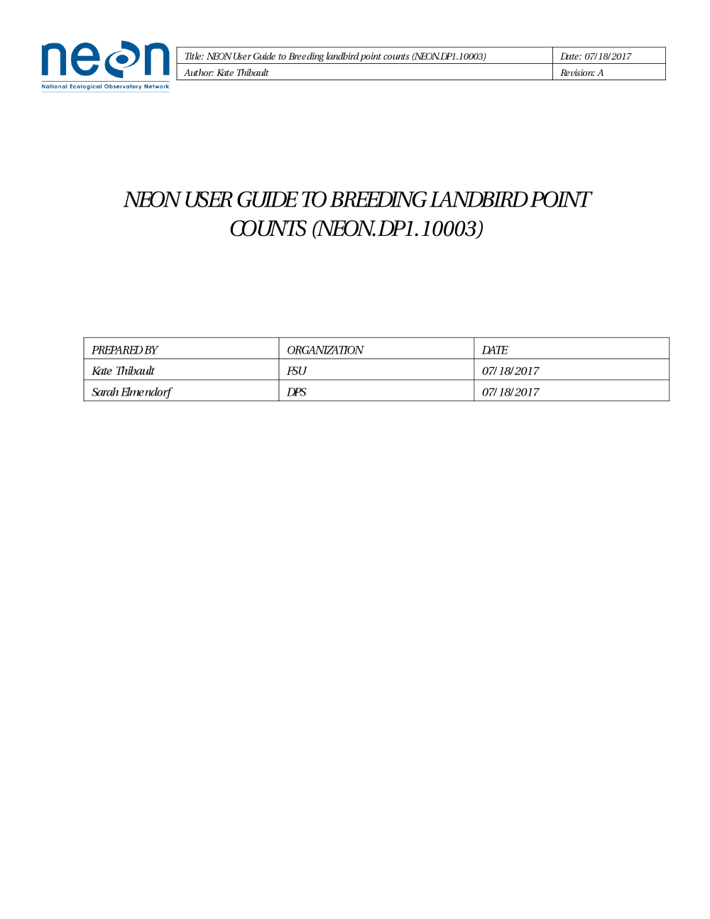 Uploaded by Christine Laney, 7/19/17 3:29 PM NEON User Guide to Breeding landbird point counts (NEON.DP1.10003)