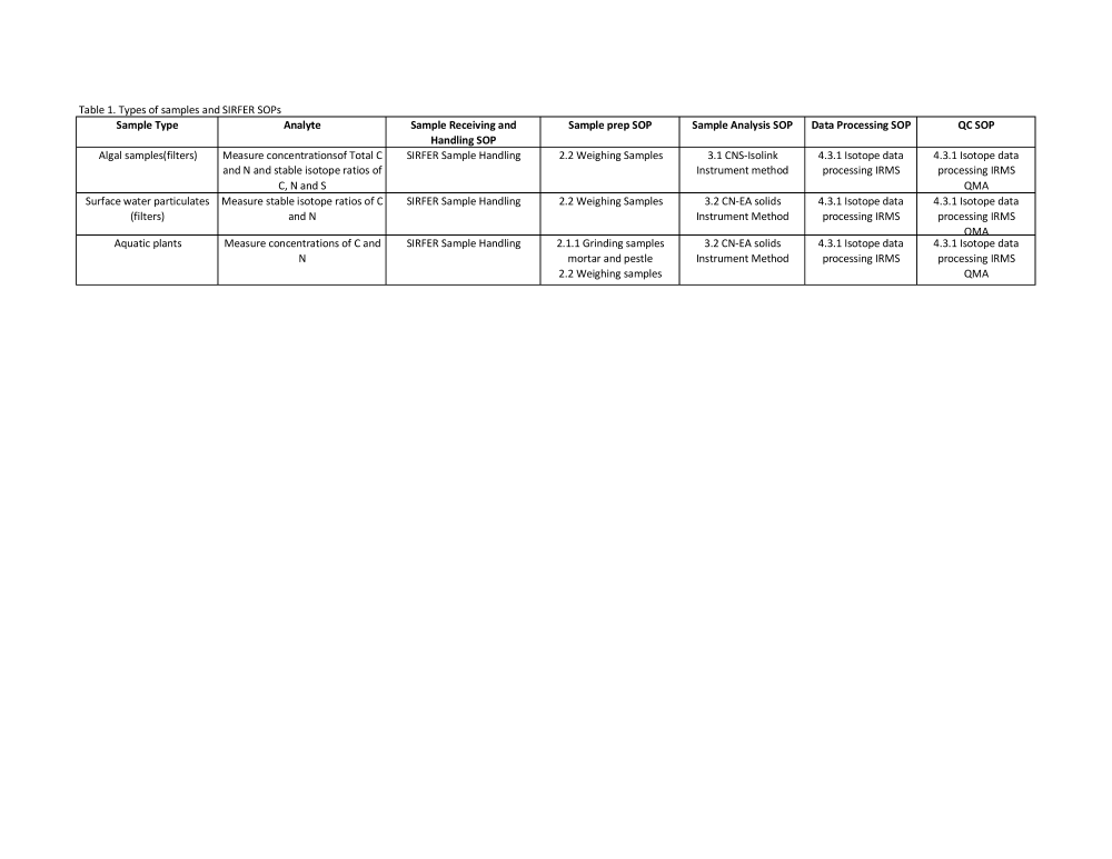 Methods Used By The SIRFER Laboratory at the University of Utah For Analysis of POM Stable Isotope Ratios