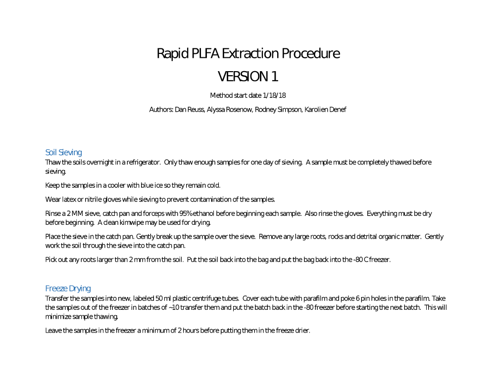 Rapid PLFA Extraction Procedure VERSION 1 Method start date 1/18/18