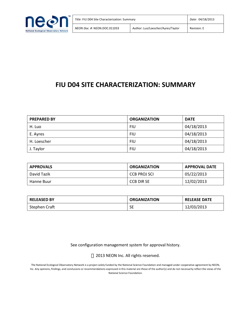 Uploaded by Data Staff, 5/28/19 6:54 PM Documents: Site Characterization Report Site Types: Terrestrial