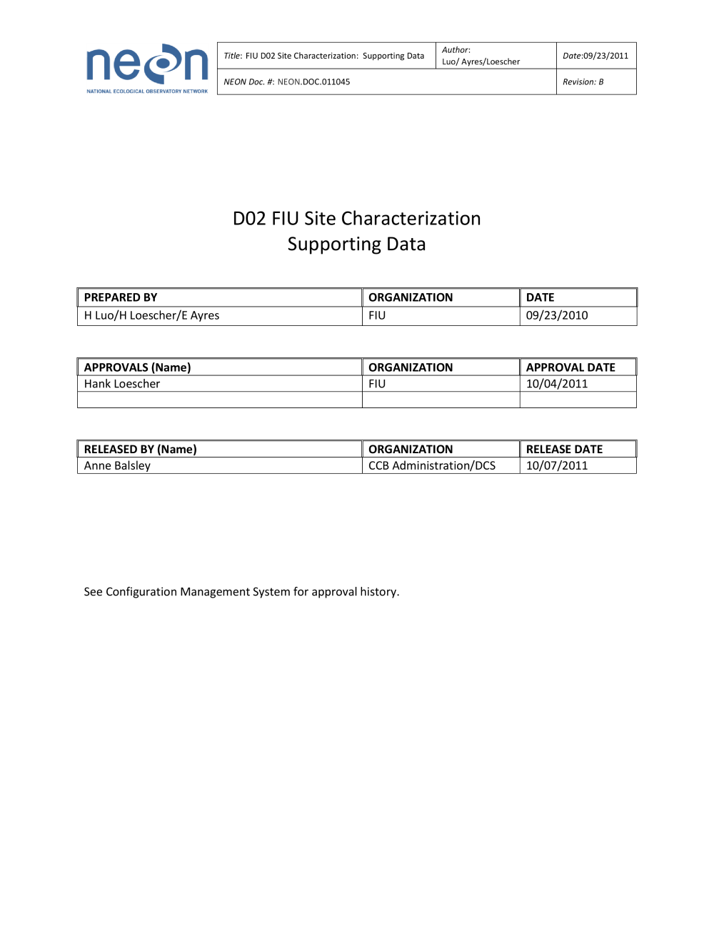 Uploaded by Data Staff, 5/28/19 7:08 PM Documents: Site Characterization Report Site Types: Terrestrial