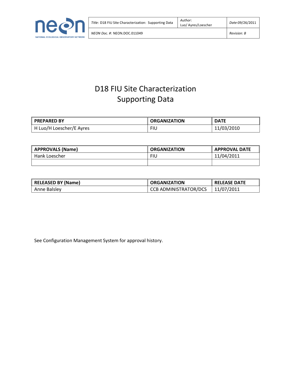 Uploaded by Data Staff, 5/28/19 7:12 PM Documents: Site Characterization Report Site Types: Terrestrial
