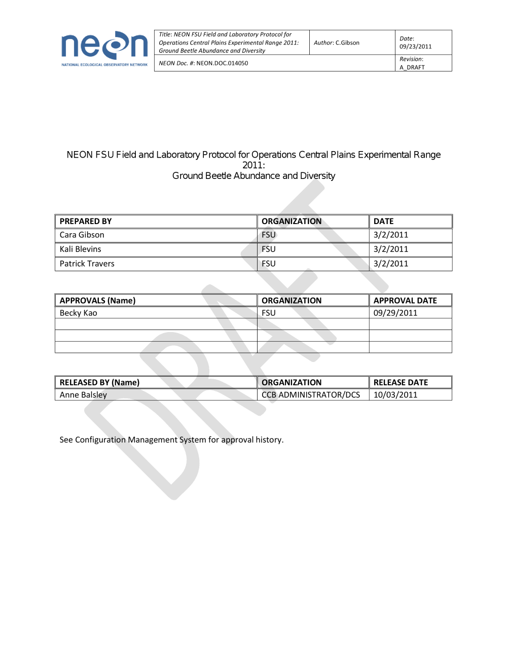 TOS PROTOCOL AND PROCEDURE: GROUND BEETLE SAMPLING