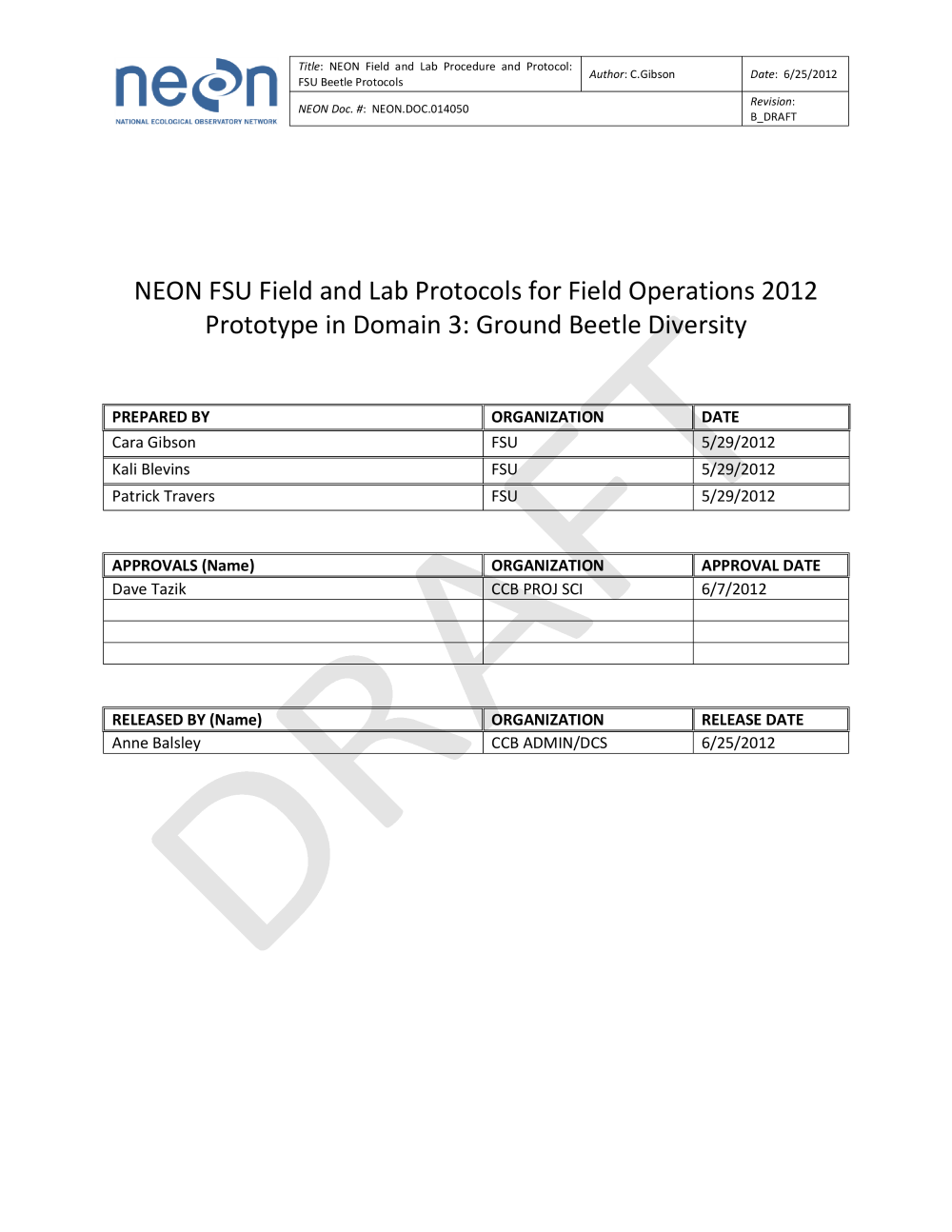 TOS PROTOCOL AND PROCEDURE: GROUND BEETLE SAMPLING