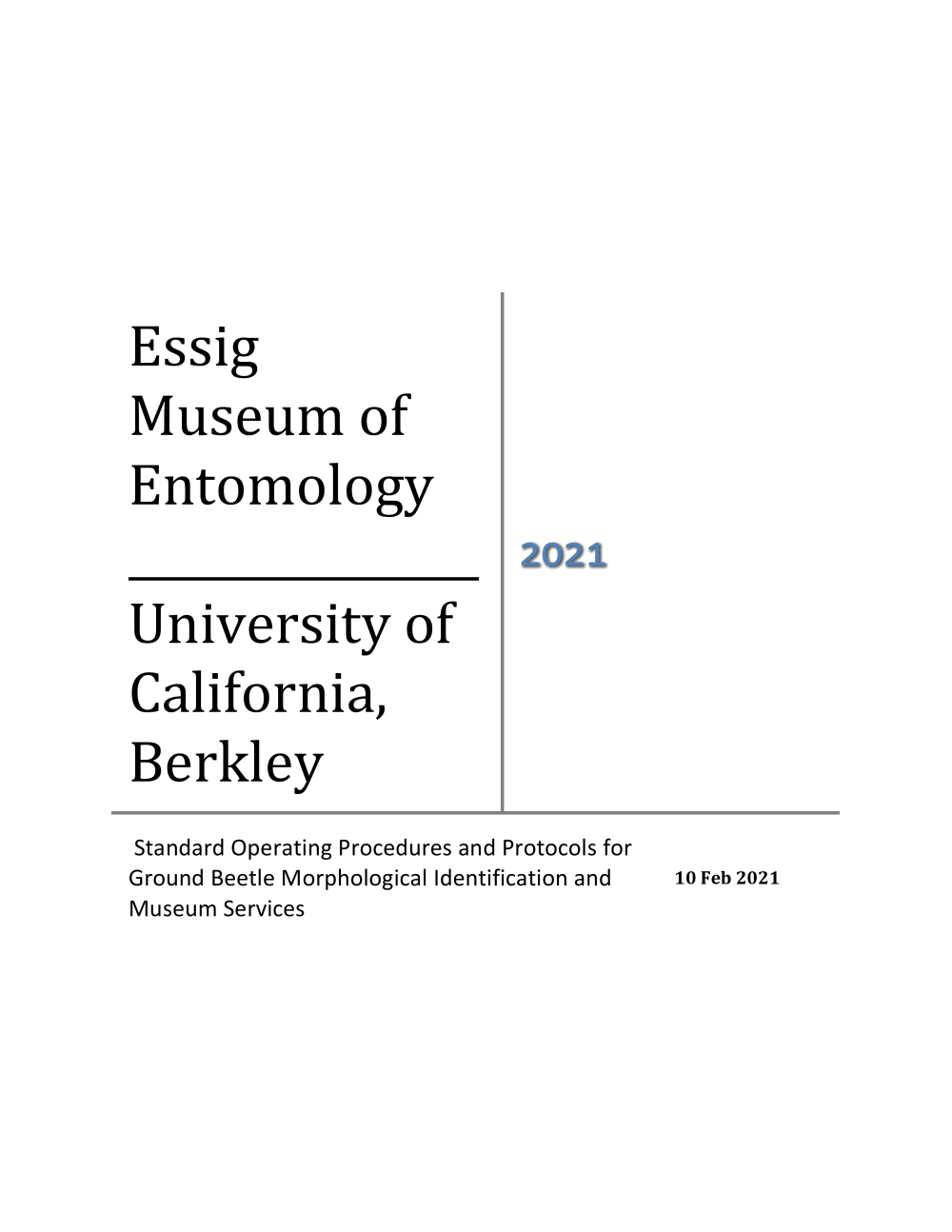Essig Museum of Entomology University of California, Berkeley. Standard Operating Procedures and Protocols for Ground Beetle Morphological Identification and Museum Services. Rev 3.