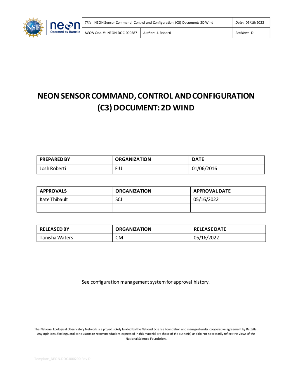 NEON Sensor Command, Control and Configuration (C3) Document: 2D Wind