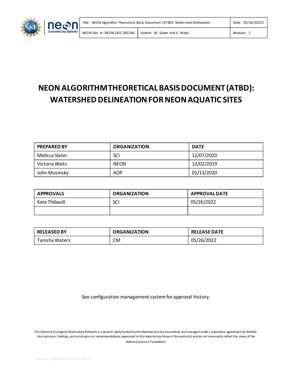 Uploaded by Data Staff, 5/25/22 4:21 PM NEON Algorithm Theoretical Basis Document (ATBD): Watershed Delineation