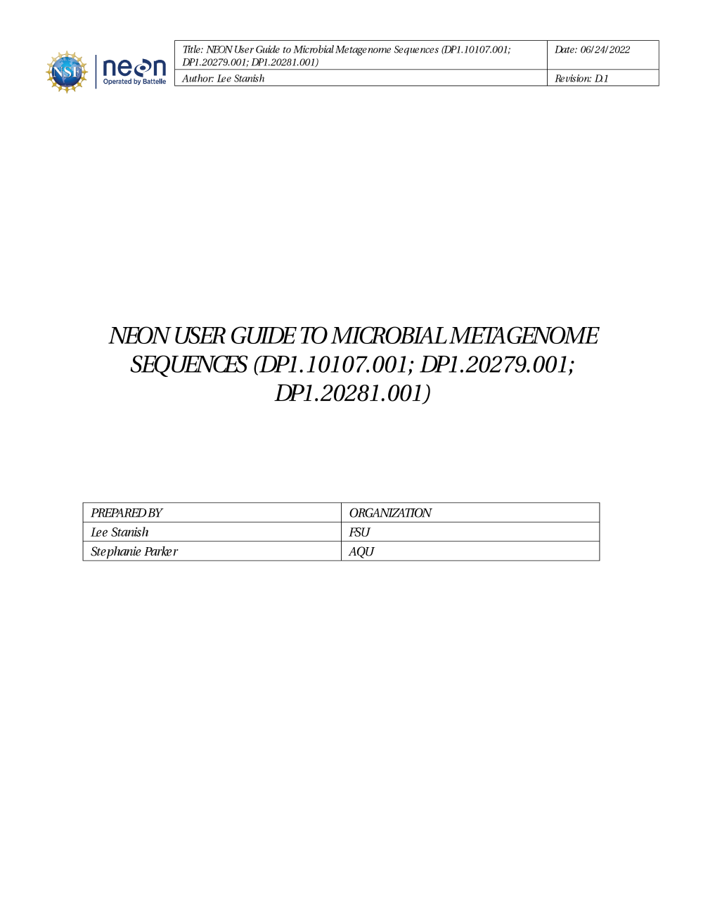 NEON User Guide to Microbial Metagenome Sequences (DP1.10107.001; DP1.20279.001; DP1.20281.001)