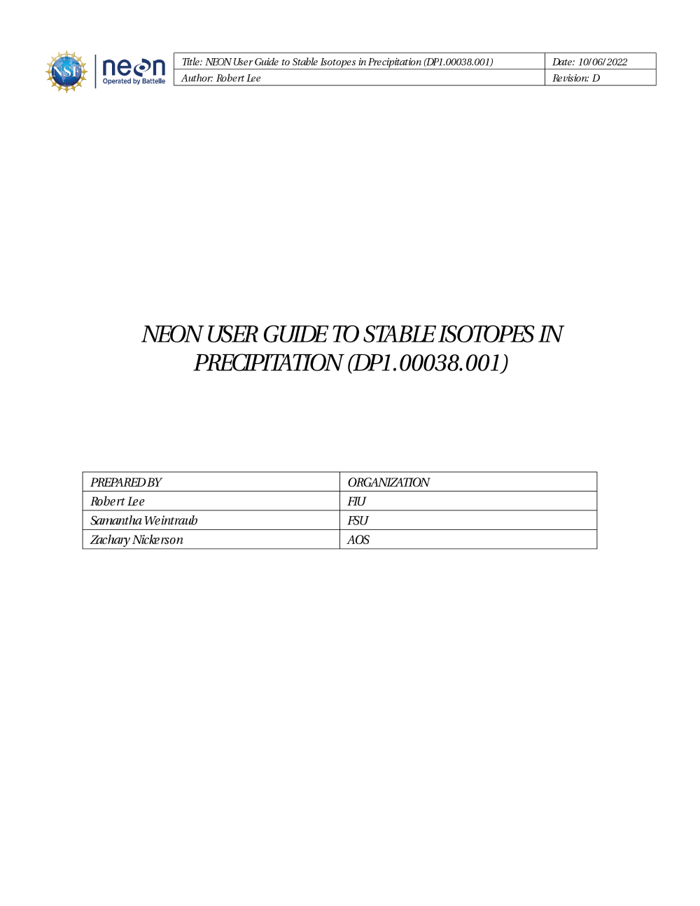NEON User Guide to Stable Isotopes in Precipitation (NEON.DP1.00038)