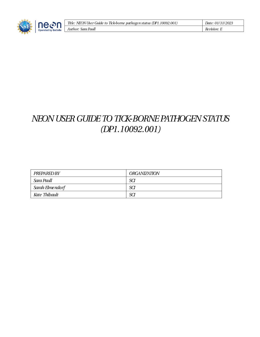NEON User Guide to Tick-borne Pathogen Status (DP1.10092)