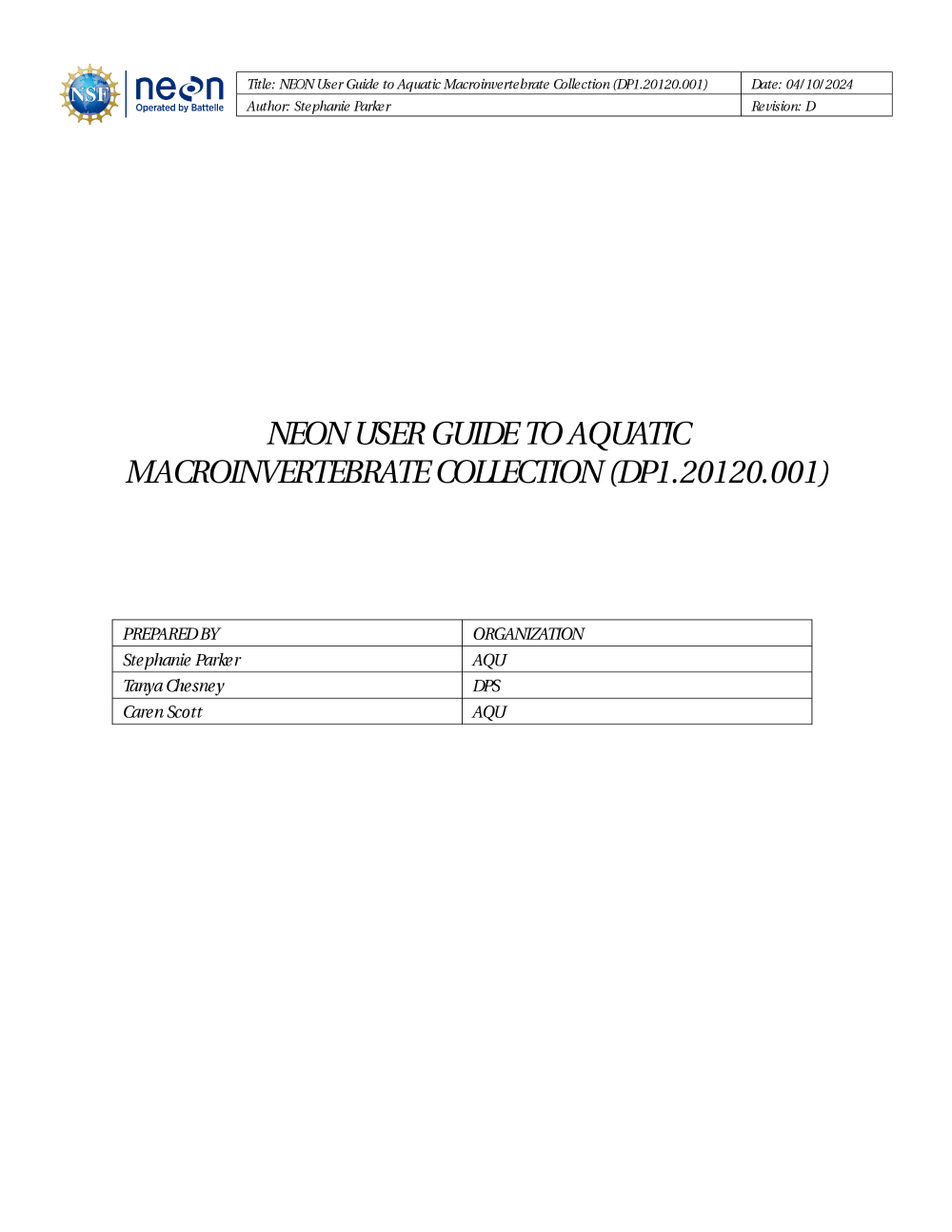 NEON User Guide to Aquatic Macroinvertebrate Collection (NEON.DP1.20120)