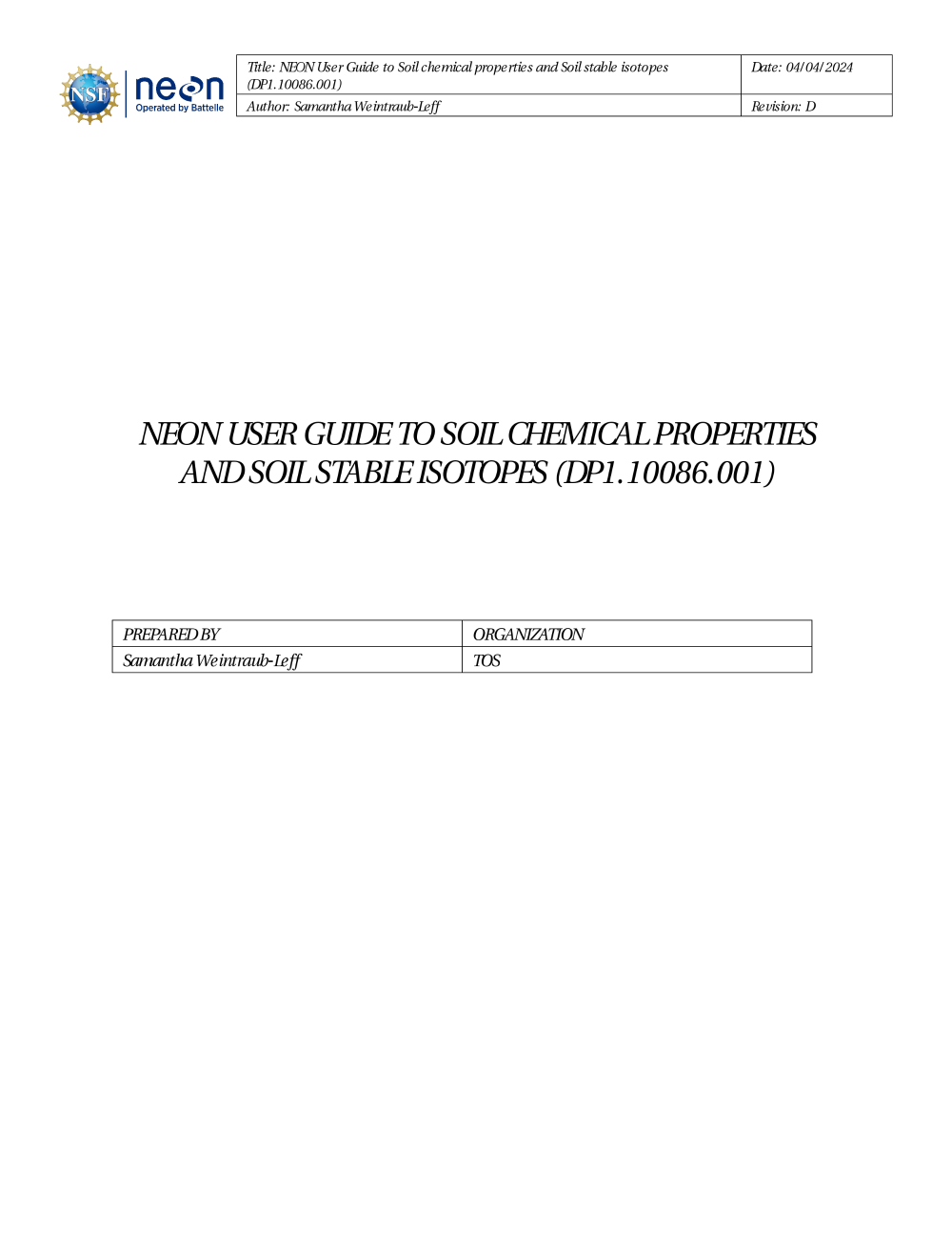 NEON User Guide to Soil Chemical Properties and Soil Stable Isotopes (DP1.10086.001)