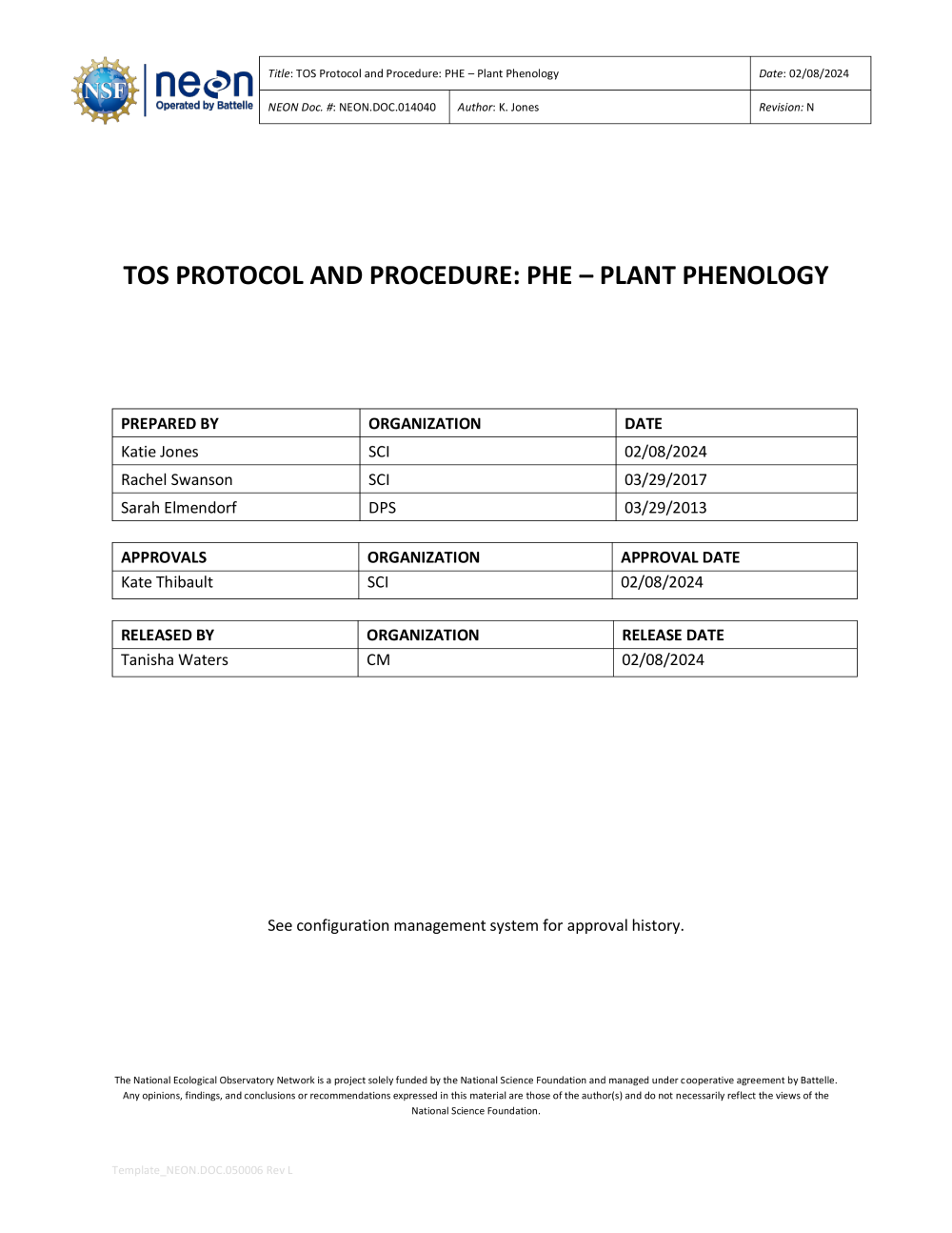 TOS Protocol and Procedure: PHE – Plant Phenology