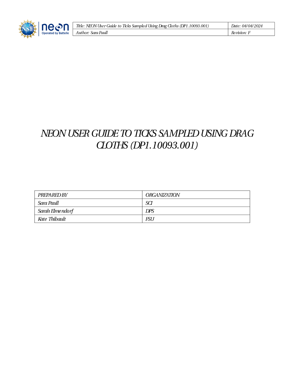 Uploaded by Data Staff, 4/16/24 2:20 PM NEON User Guide to Ticks Sampled Using Drag Cloths (DP1.10093.001)