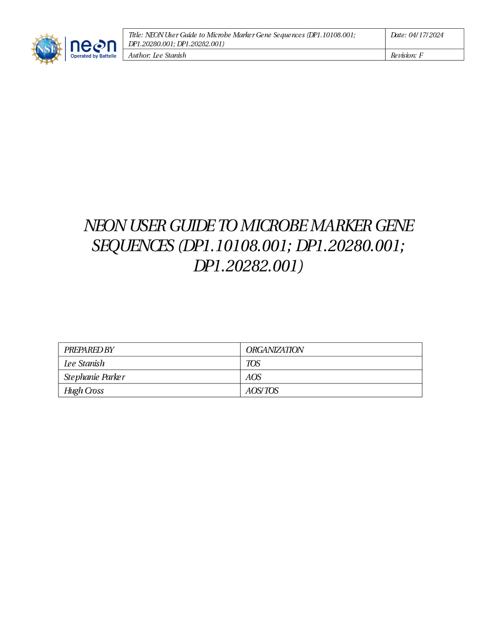 NEON User Guide to Microbe Marker Gene Sequences (DP1.10108.001; DP1.20280.001; DP1.20282.001)