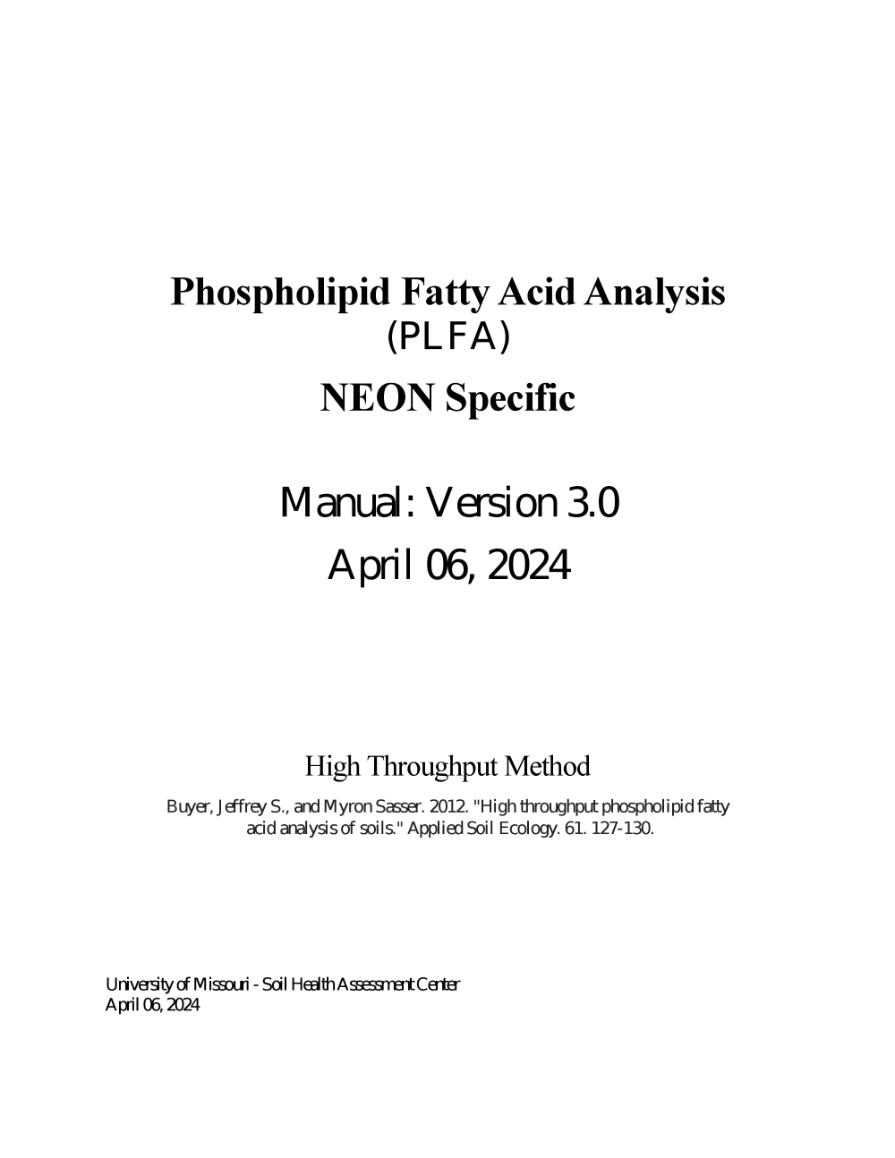 Phospholipid Fatty Acid Analysis (PLFA) NEON Specific