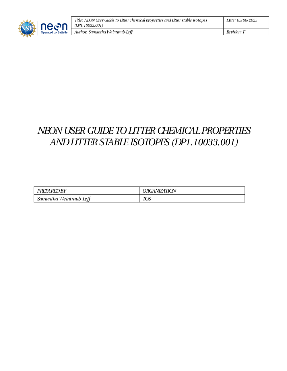 NEON User Guide to Litter chemical properties and Litter stable isotopes (DP1.10033.001)