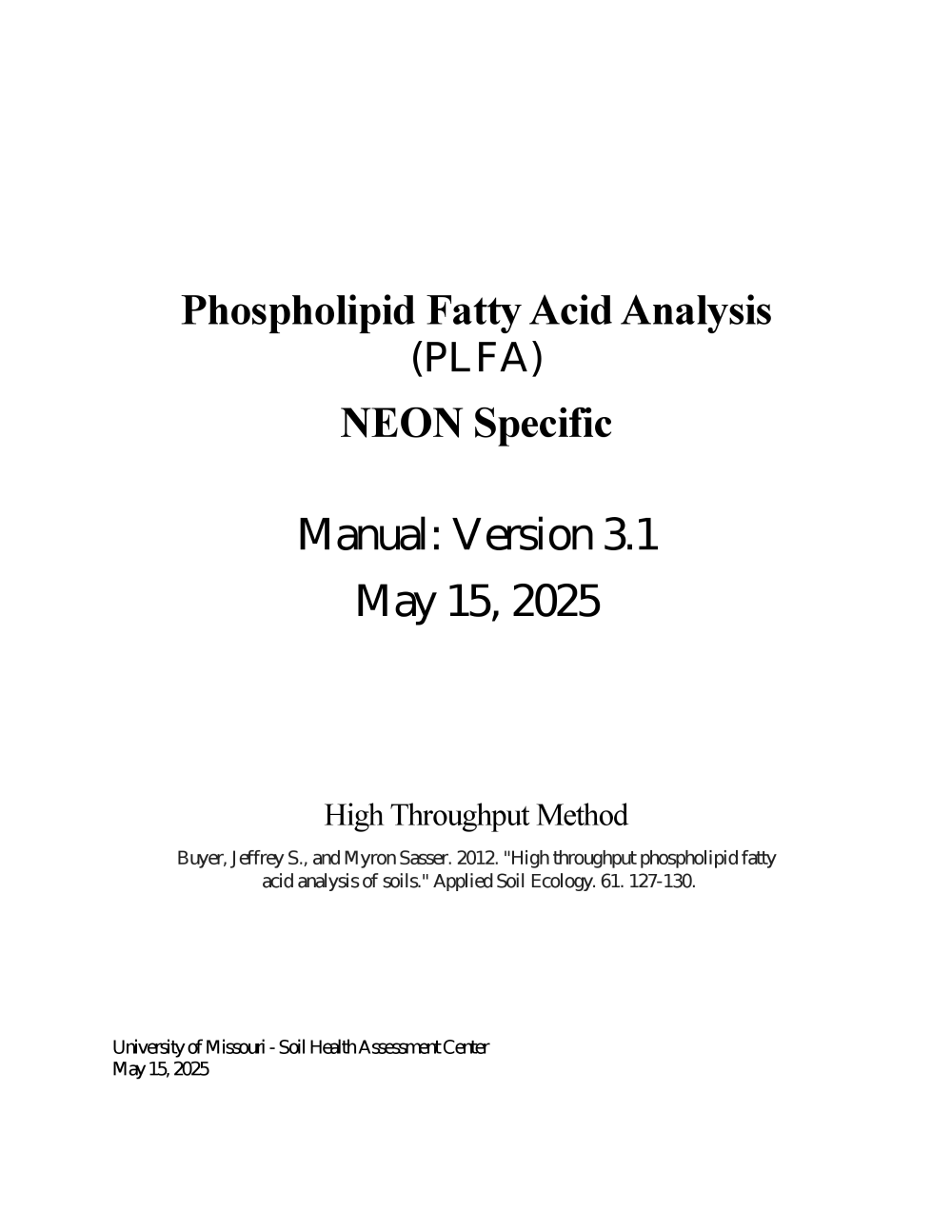 University of Missouri- Soil Health Assessment Center SOP: Phospholipid Fatty Acid Analysis (PLFA) NEON Specific