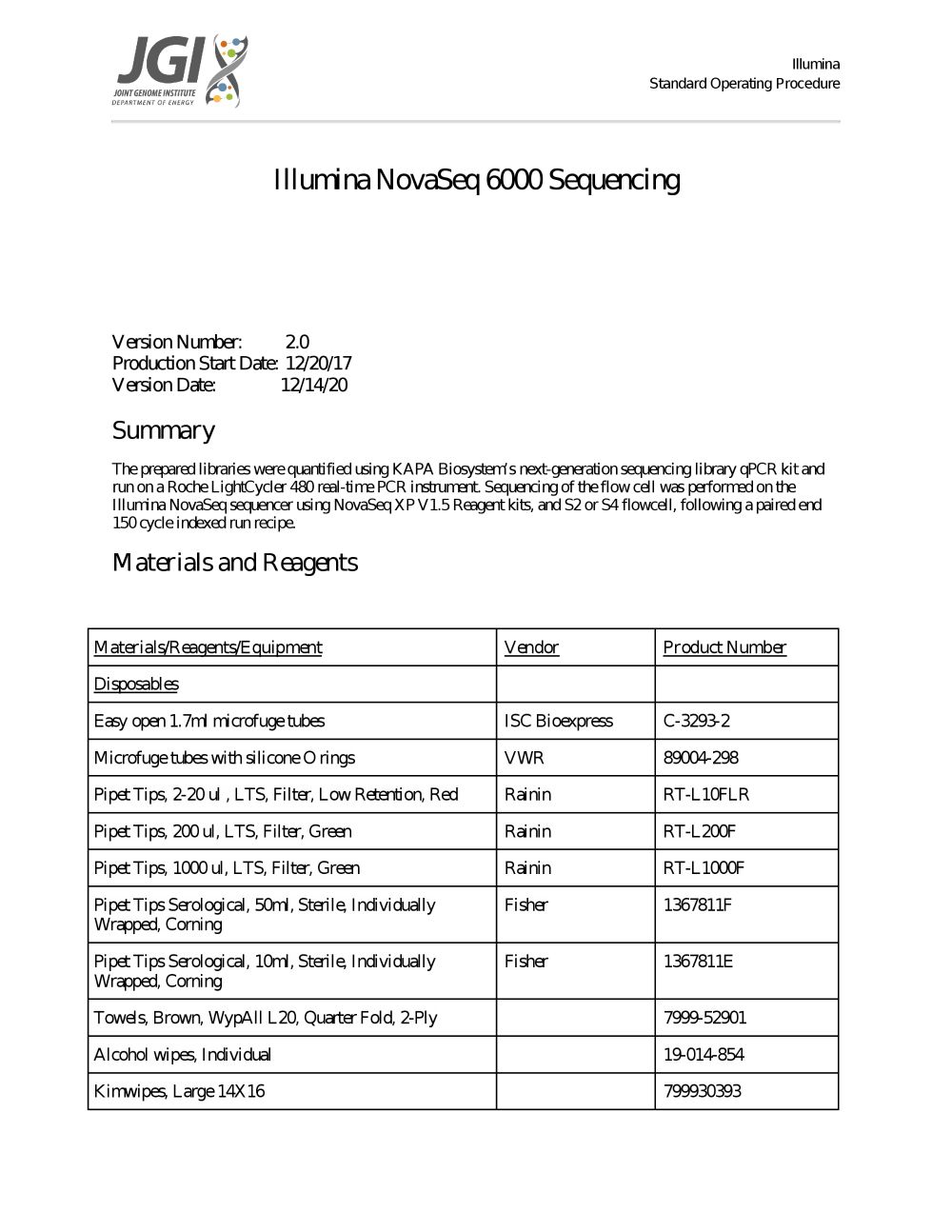 Joint Genome Institute SOP: Illumina NovaSeq 6000 Sequencing