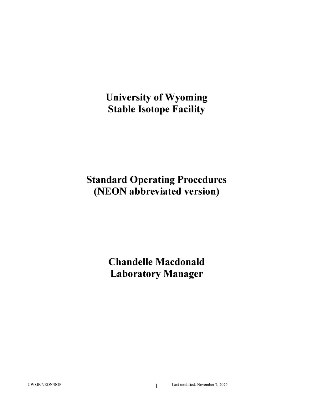 University of Wyoming Stable Isotope Facility Standard Operating Procedures (NEON abbreviated version)