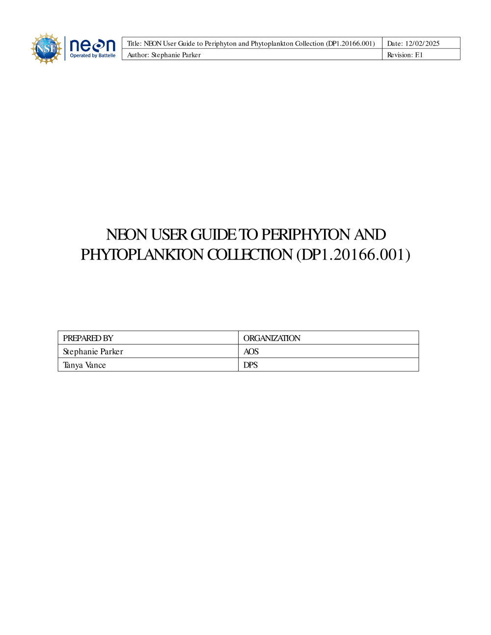 NEON User Guide to Periphyton and Phytoplankton Collection (DP1.20166.001)