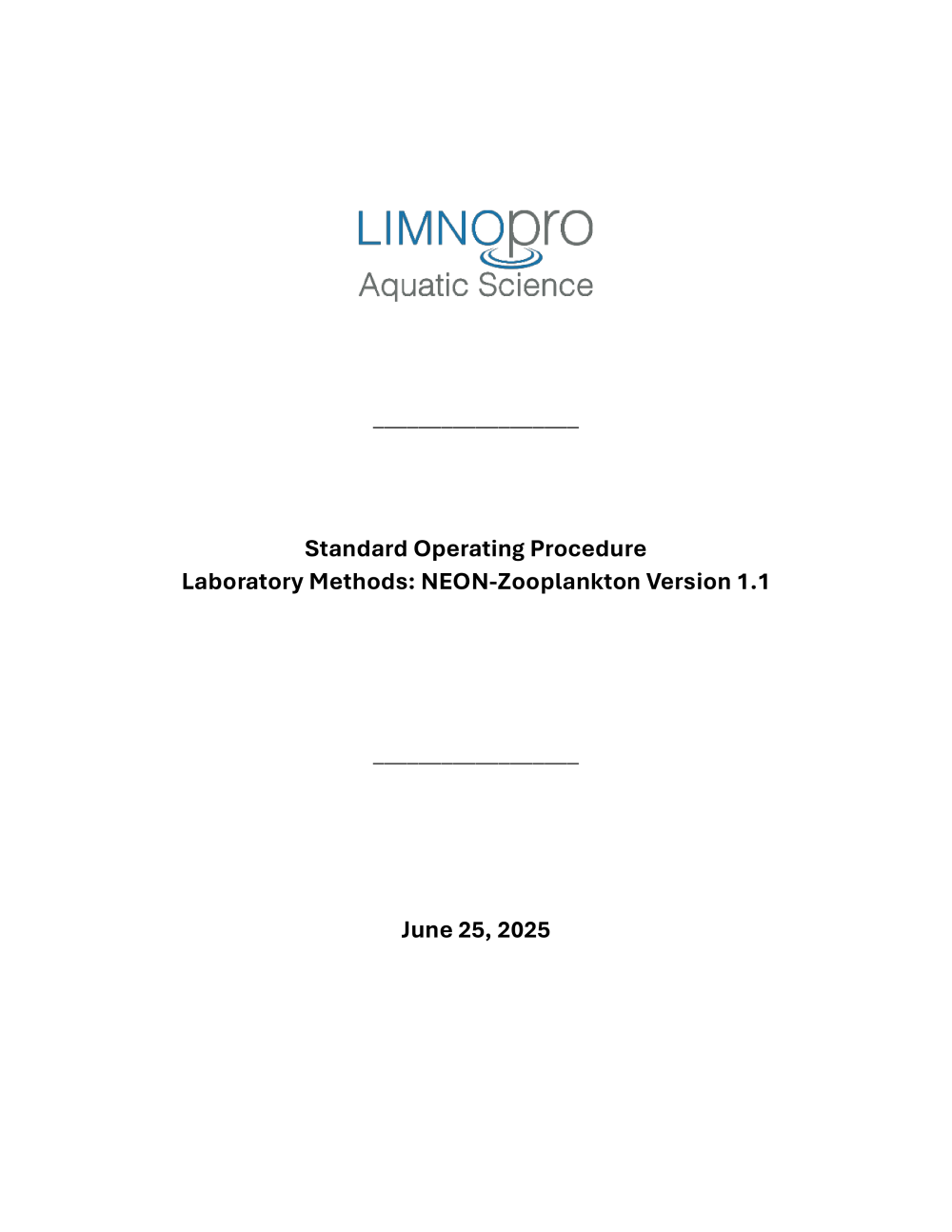 Standard Operating Procedure Laboratory Methods: NEON-Zooplankton Version 1.1