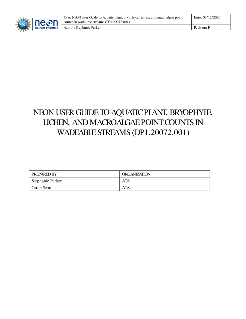 NEON User Guide to Aquatic Plant, Bryophyte, Lichen, and Macroalgae Point Counts in Wadeable Streams (NEON.DP1.20072)
