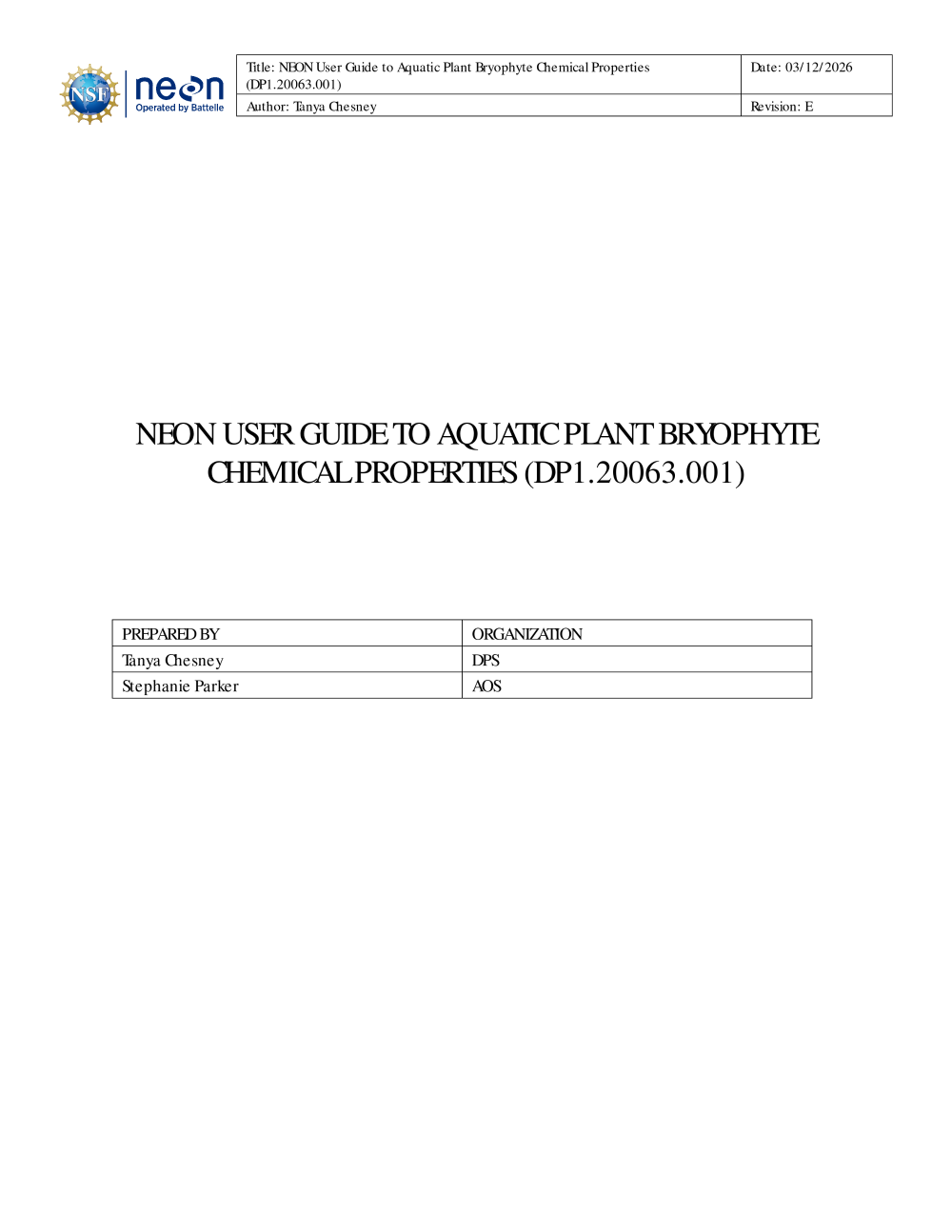 Uploaded by Data Staff, 3/30/26 10:04 PM NEON User Guide to Aquatic Plant Bryophyte Chemical Properties (NEON.DP1.20063)