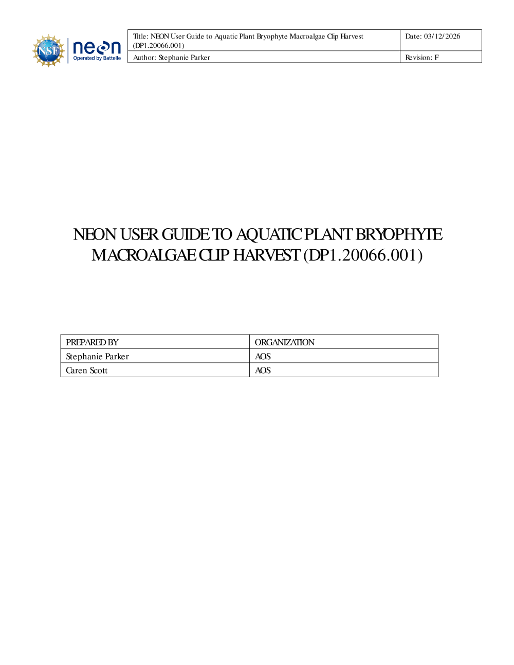 Uploaded by Data Staff, 3/30/26 10:06 PM NEON User Guide to Aquatic Plant Bryophyte Macroalgae Clip Harvest (NEON.DP1.20066)