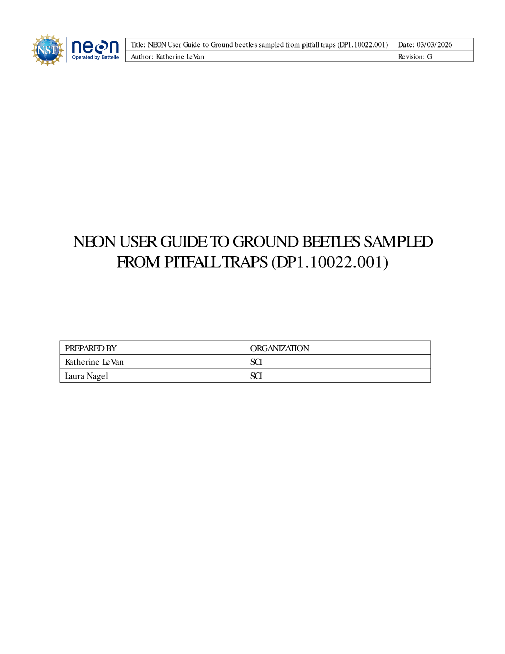 Uploaded by Data Staff, 3/31/26 8:12 PM NEON User Guide to Ground Beetles Sampled from Pitfall Traps (DP1.10022.001)