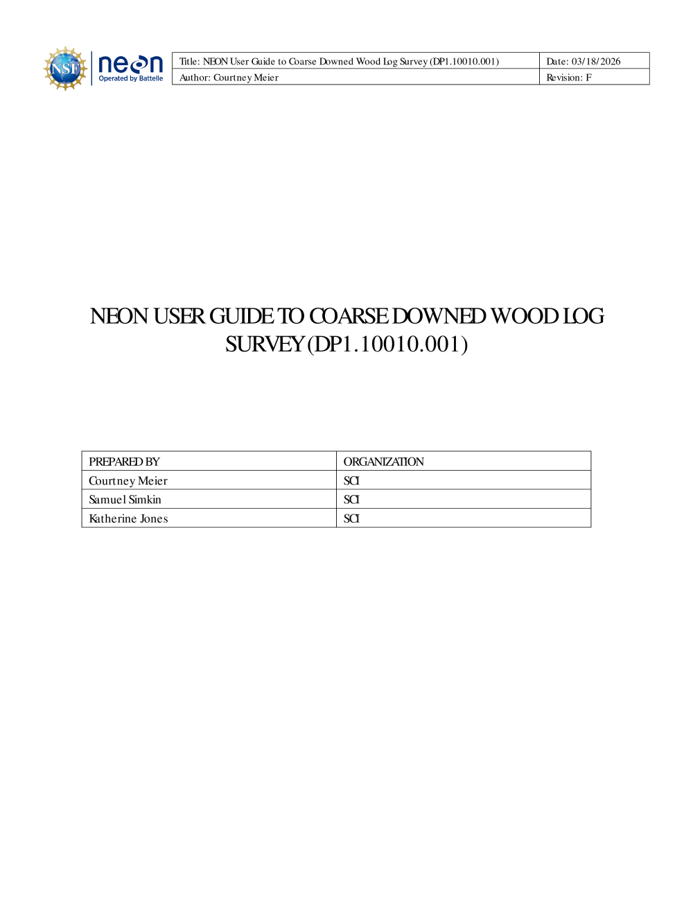 Uploaded by Data Staff, 3/31/26 8:21 PM NEON User Guide to Coarse Downed Wood Log Survey (NEON.DP1.10010)