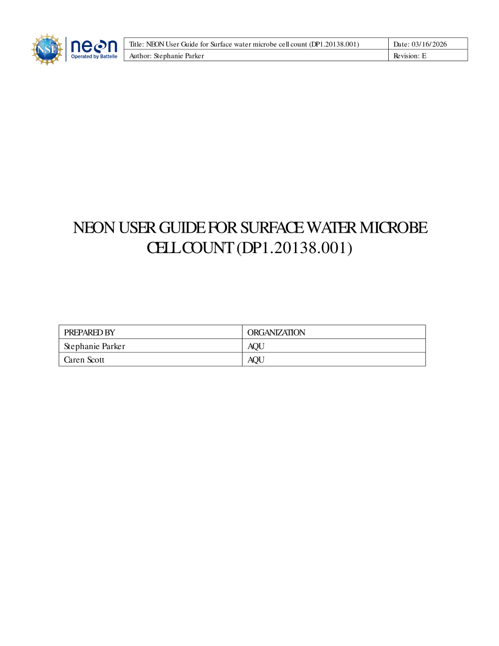 Uploaded by Data Staff, 3/30/26 9:52 PM NEON User Guide for Surface Water Microbe Cell Count (DP1.20138.001)
