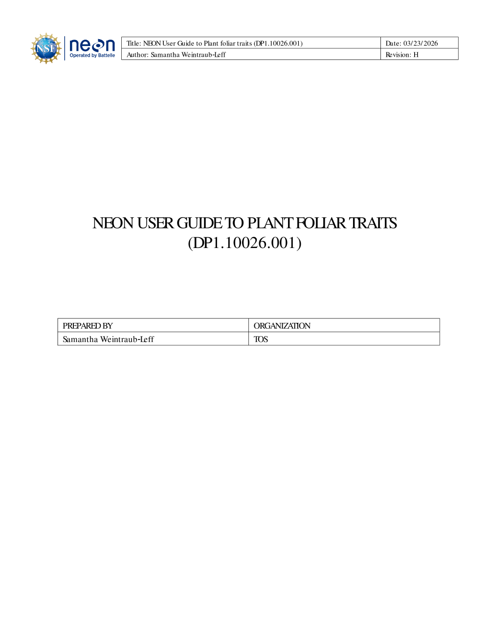 NEON User Guide to Plant Foliar Traits (DP1.10026.001)