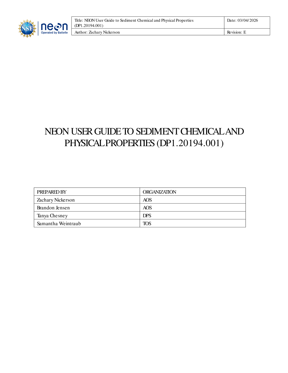NEON User Guide to Aquatic Sediment Chemical and Physical Properties (NEON.DP1.20194.001 and NEON.DP1.20197.001)
