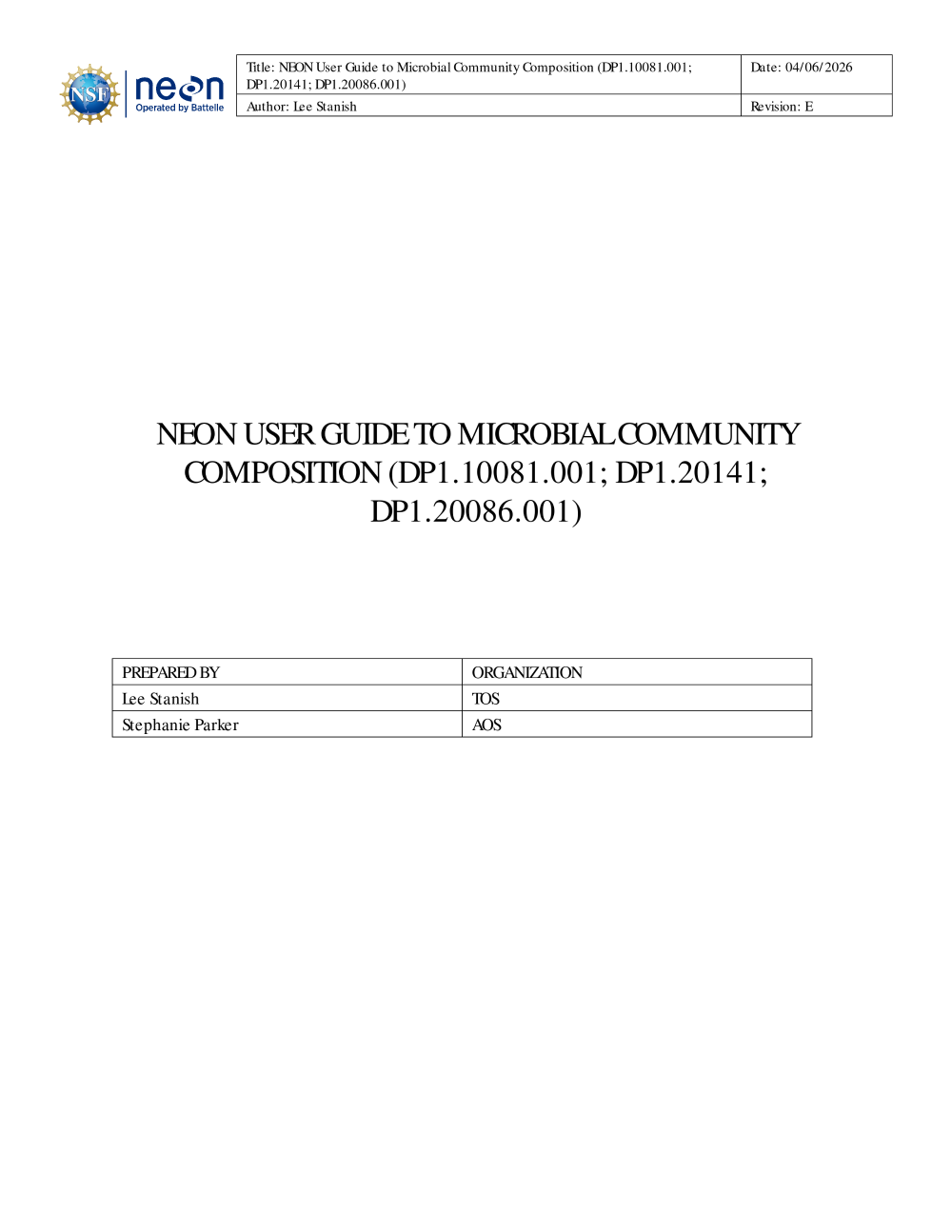 NEON User Guide to Microbial Community Composition (NEON.DP1.10081; NEON.DP1.20141; NEON.DP1.20086)